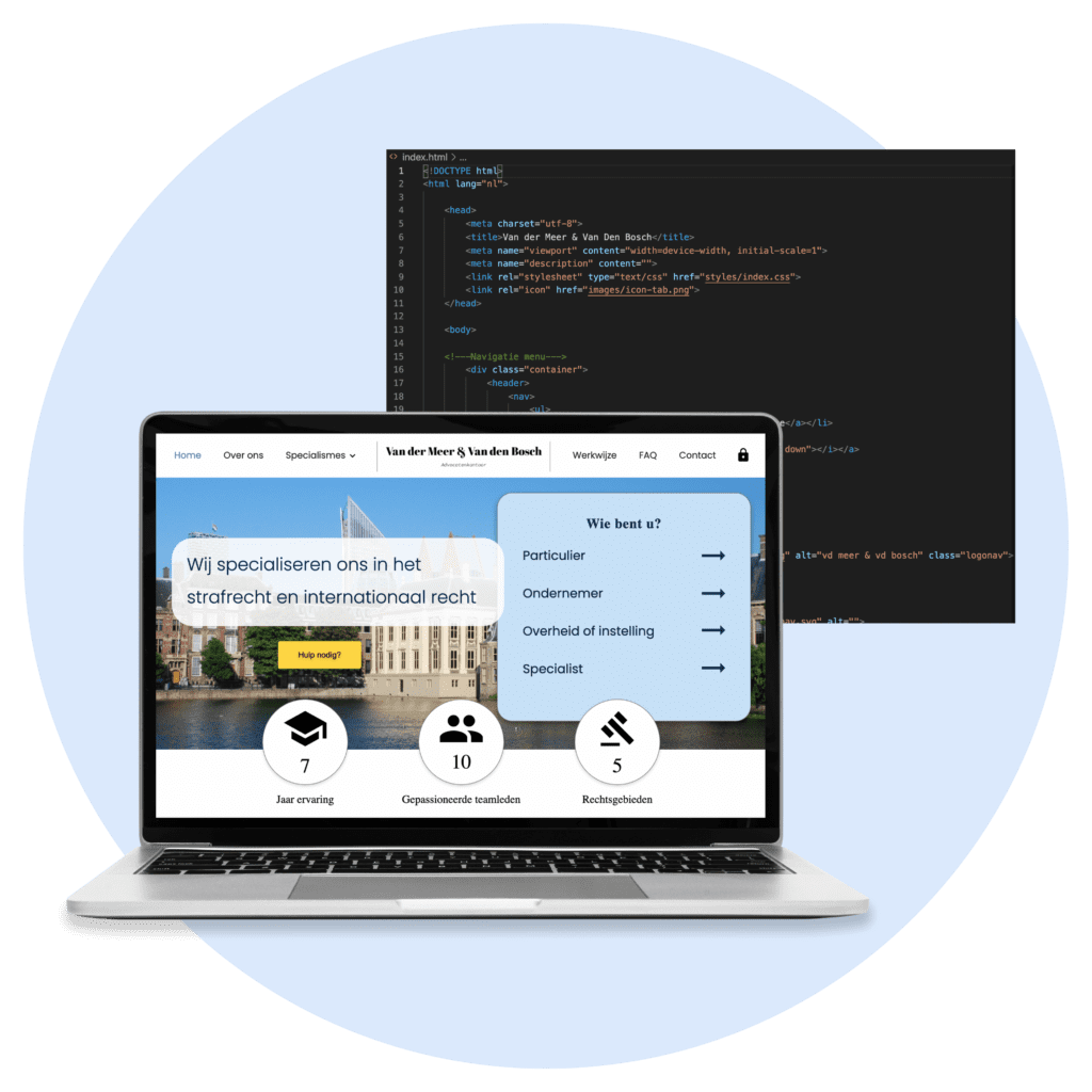 Voor een schoolproject heb ik een huisstijl en website gemaakt voor dit advocatenkantoor. De uiteindelijke ontwerpen heb ik omgezet naar een werkende website in HTML en CSS.