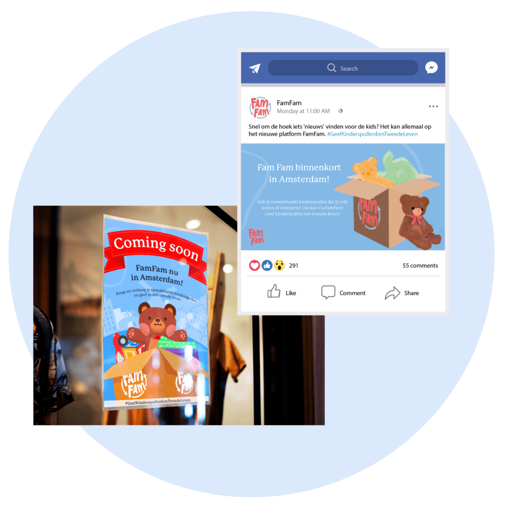 Voor het online platform FamFam, een lokale marktplaats voor tweedehands kinderspullen, hebben wij een campagne ontworpen om hun uitrol in Amsterdam te promoten.